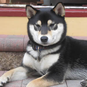 Black-tipped hairs on a rich red background with urajiro. Tipping is light and even on the body and head with no concentration of black in any area. Sesame areas appear at least one-half red. Sesame may end in a widow's peak on the forehead, leaving the bridge and sides of the muzzle red. Eye spots and lower legs are also red. Clearly delineated white markings are permitted but not required on the tip of the tail and in the form of socks on the forelegs to the elbow joint, hind legs to the knee joint. A patch of blaze is permitted on the throat, forechest, or chest in addition to urajiro.  |